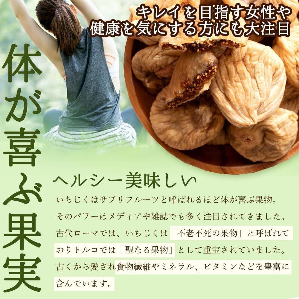 濃厚な味とプチプチッとした食感が病みつきになる、やわらかで大粒・肉厚なドライフルーツです。トルコ産のドライ いちじくですので、味は甘味が強く、粒は大粒で皮が柔らかく果肉が多いのが特徴です。柔らかいので食べやすく、粒が大きめなので一粒でも十分な食べ応えがございます。また、【無添加 砂糖不使用】 です! ドライいちじくの一日の摂取量の目安は、およそ2~3個程度です。食物繊維も豊富に含まれておりますので、おなかがゆるくなったりする場合がございますので、ご注意ください。