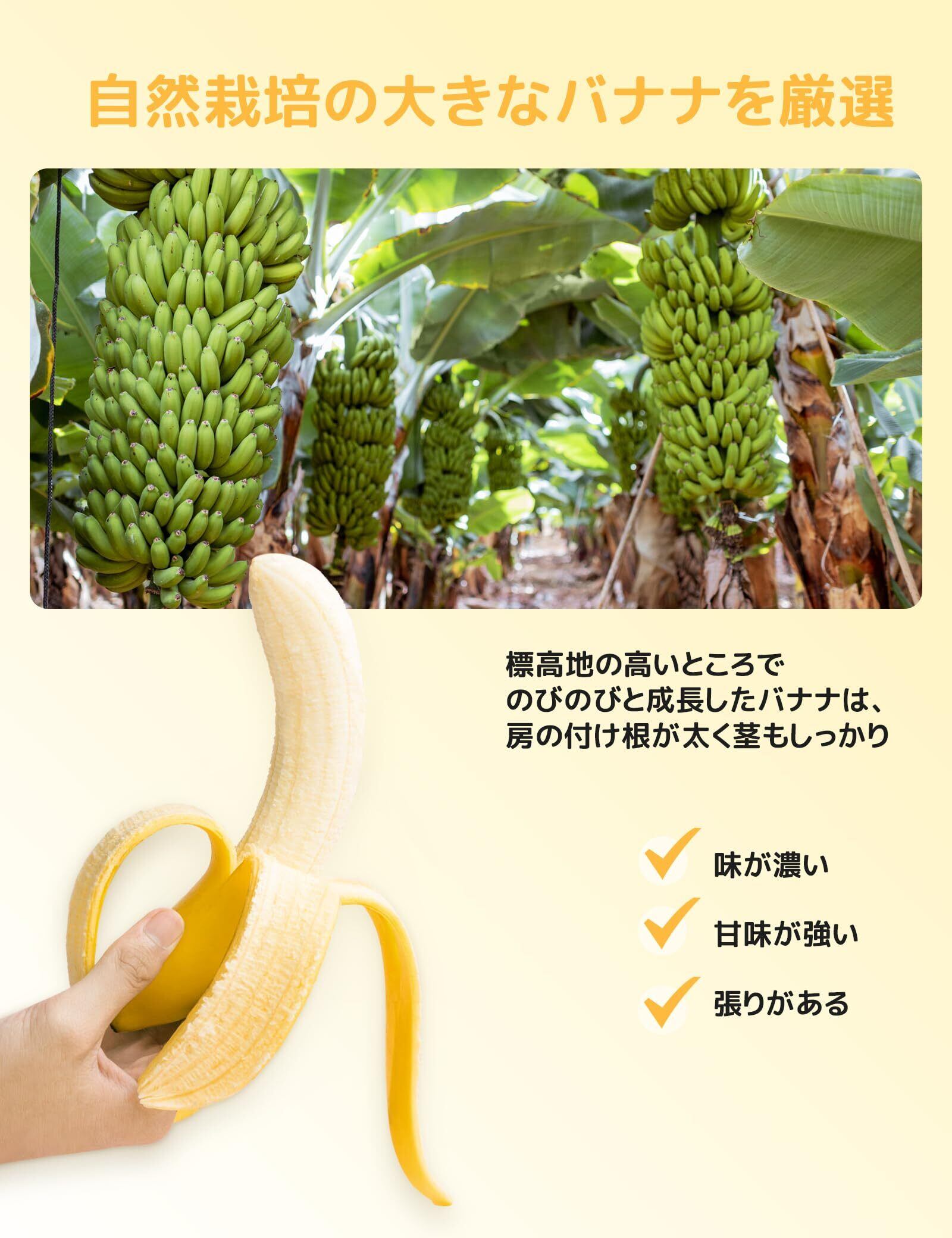 【材料選択/加工】①材料選択:中国産自然栽培の大きなバナナを厳選。標高地の高い所でのびのびと成長した、甘味の強いばななを使用しています。②GMP標準工場加工:深さ160メートルの水底に汚染のない井戸水を用いて洗浄し、−30℃で凍結乾燥、金属探査による不純物除去、オゾン滅菌、無菌職場での包装を行っています。