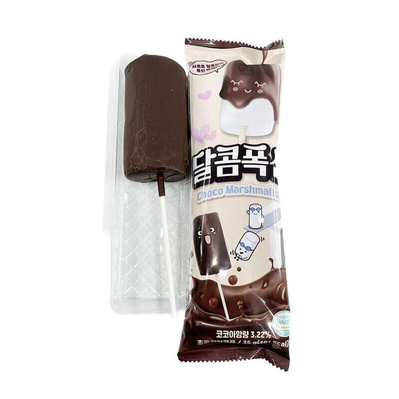 現在韓国で話題のチョコマシュマロです。 串になっているマシュマロで、外側に薄いチョココーティングが施されており、甘くてふわふわだが食感のある形のデザートです。