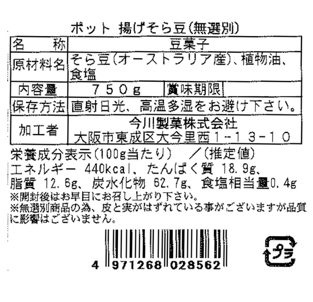原材料名:そら豆(オーストラリア産)、植物油、食塩