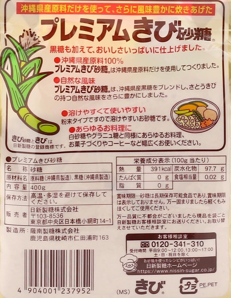 ・プレミアムきび砂糖は、沖縄県産原料だけを使用してつくりました。また、黒糖(もちろん沖縄産)を適量ブレンドして炊きあげることにより、従来のきび砂糖よりもさらに風味豊かに仕上げました。