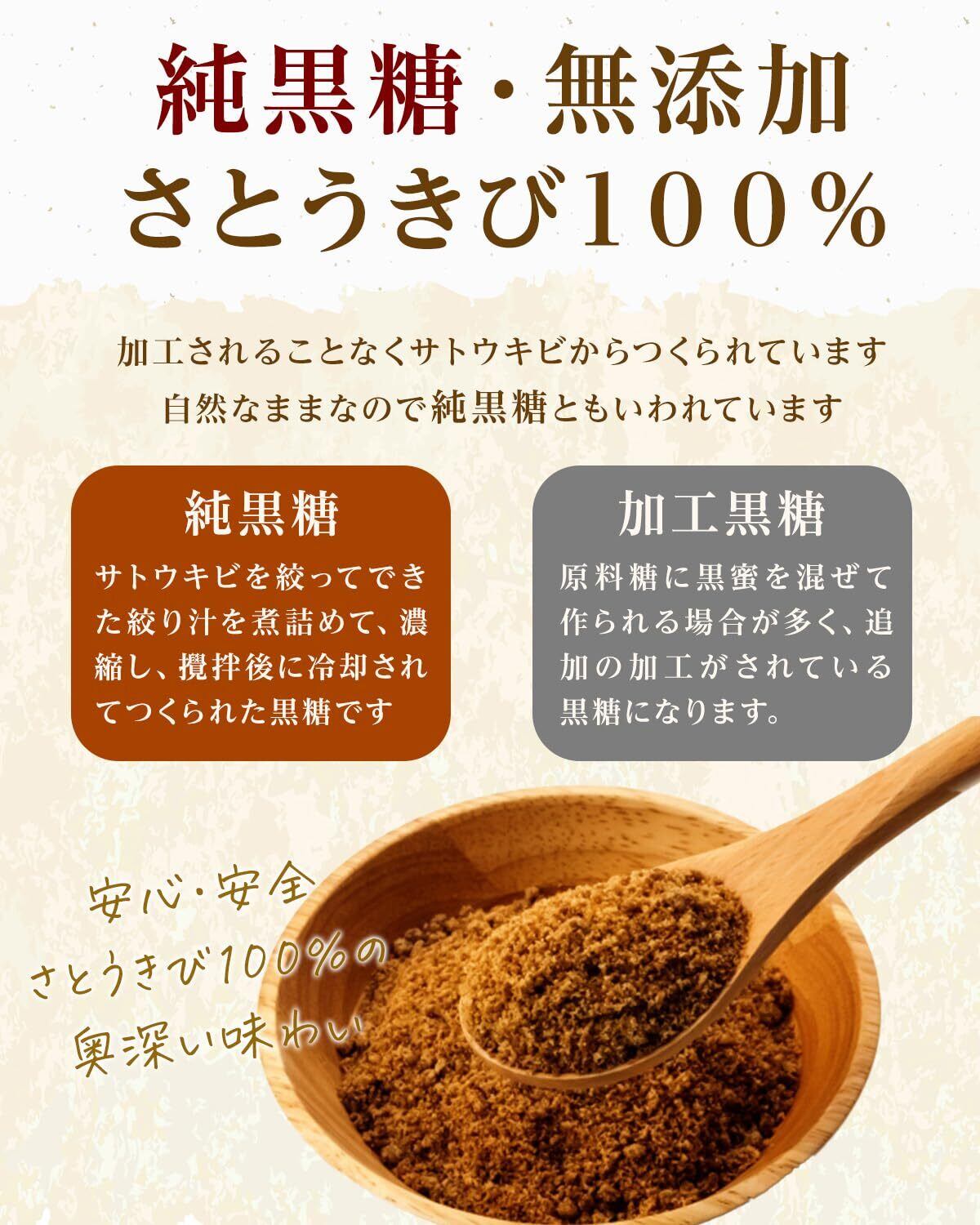 余計なものを一切加えない、無添加の純黒糖粉末。波照間島産100%の安心素材です。