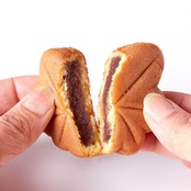 ■品名:かすてらまんじゅう ■名称:菓子■原材料名:こしあん、小麦粉、鶏卵、砂糖、ショートニング、水飴、食用植物油脂、砂糖・異性化液糖、ソルビトール、加工でん粉、重曹、膨脹剤、乳化剤、香料、pH調整剤、着色料(アナトー、カロテン)、(原材料の一部に大豆を含む)