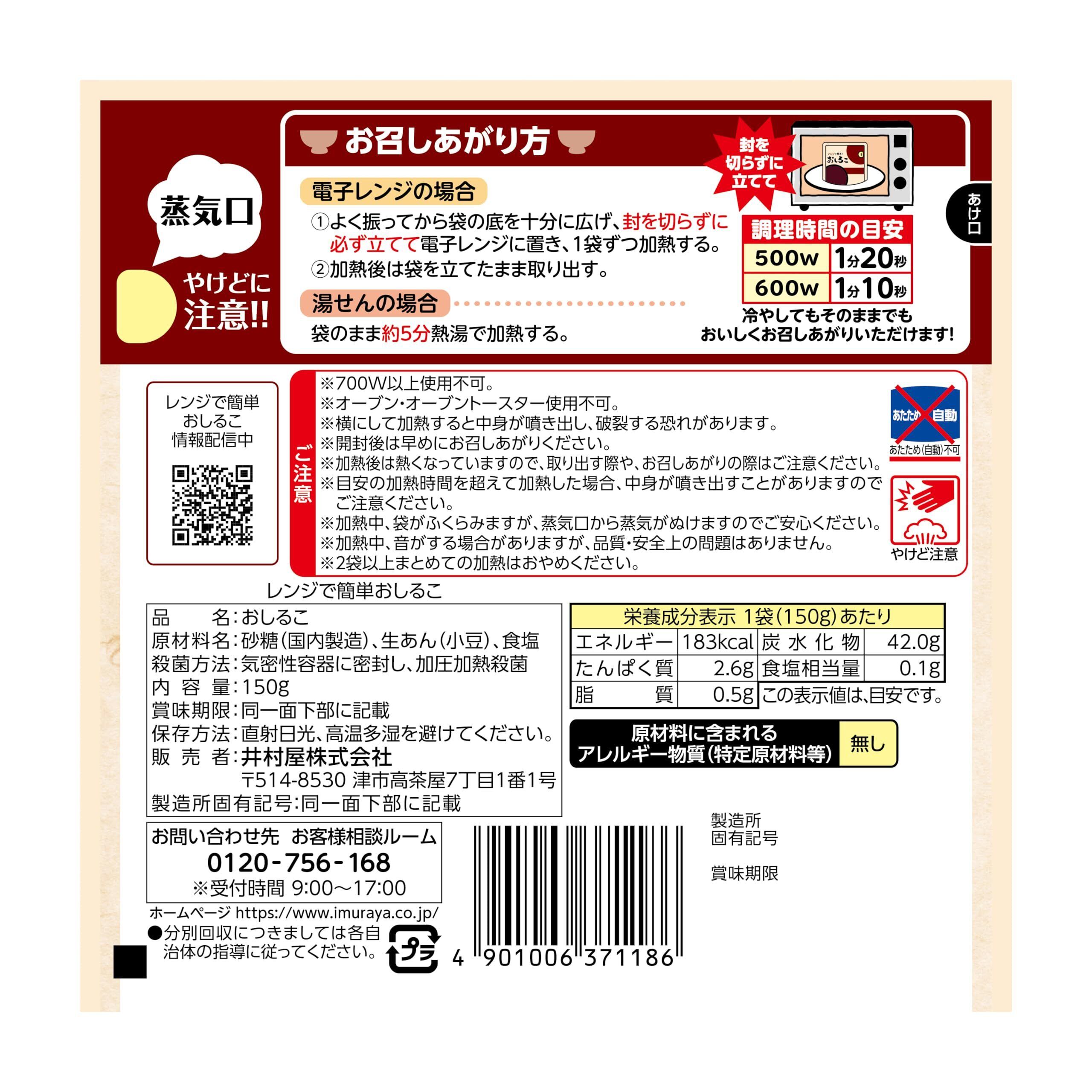 井村屋 レンジで簡単おしるこ 150g×5個 【電子レンジ】 【パウチ】 【冷やしぜんざい】