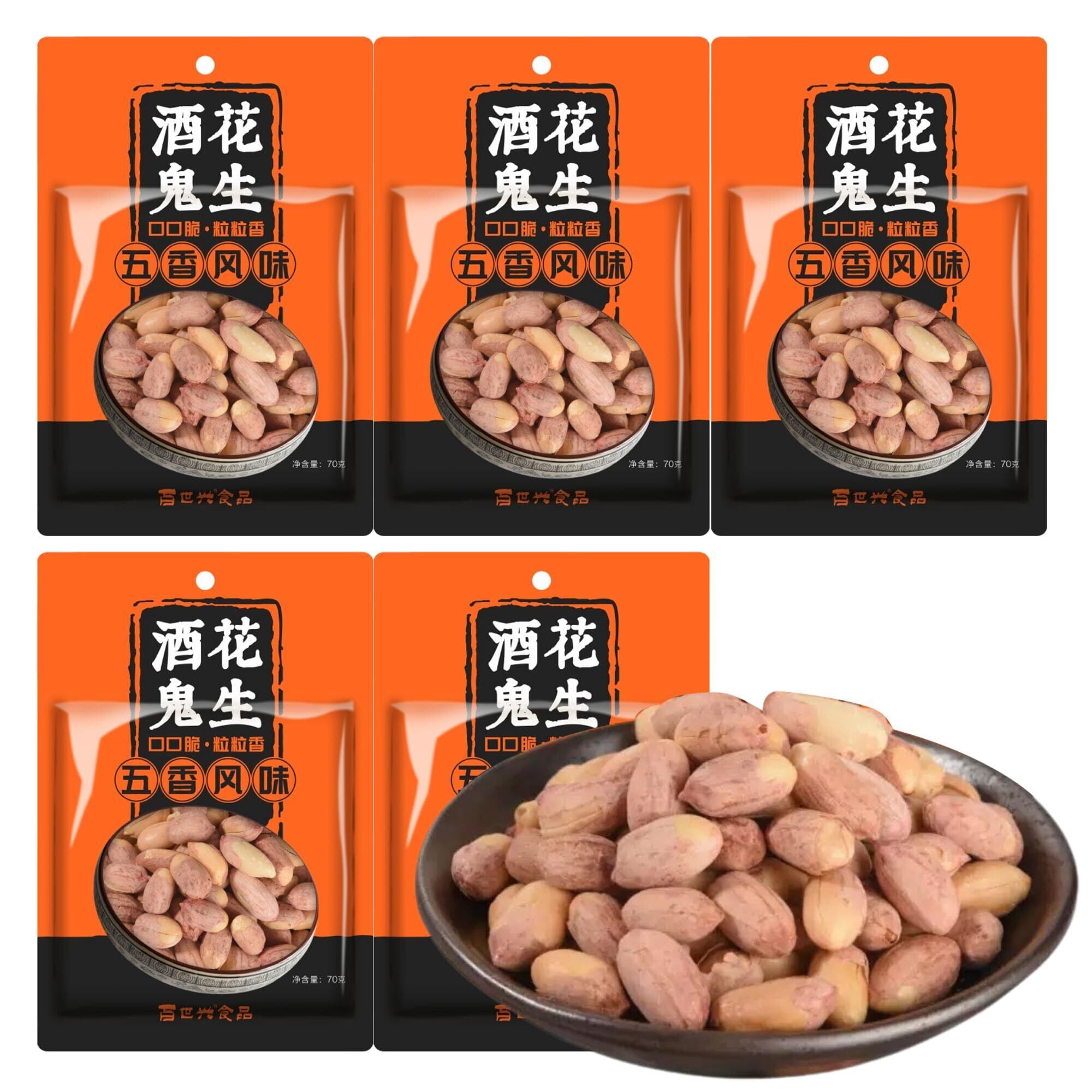 酒鬼花生米 ファイブスパイスフレーバー ピーナッツ 個包装小パック 塩味 クリスピー ぴーなっつ 酒の肴 花生 花生米 おやつ 食欲アップ菓子 おつまみ ナッツ 中国食品 休闲零食(70g*5袋)
