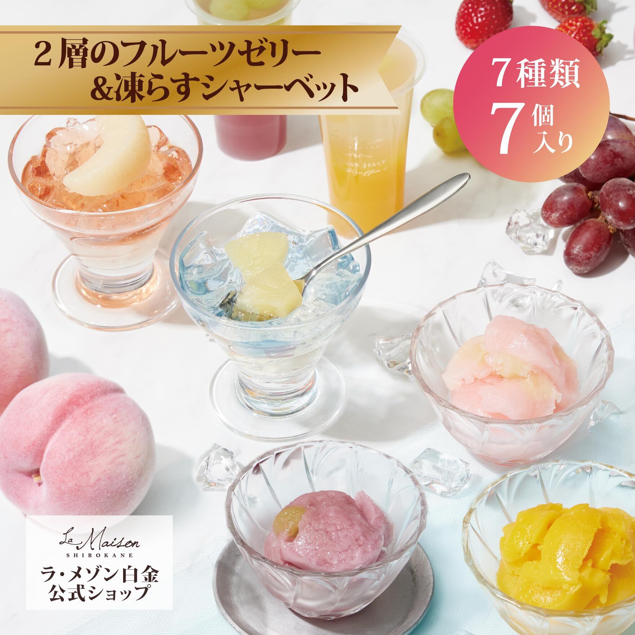 【ラ・メゾン白金】 2層のフルーツゼリー&凍らすシャーベット 7個入 ゼリー4個 シャーベット3個 お菓子 スイーツ 個包装 常温保存 ギフト プレゼント