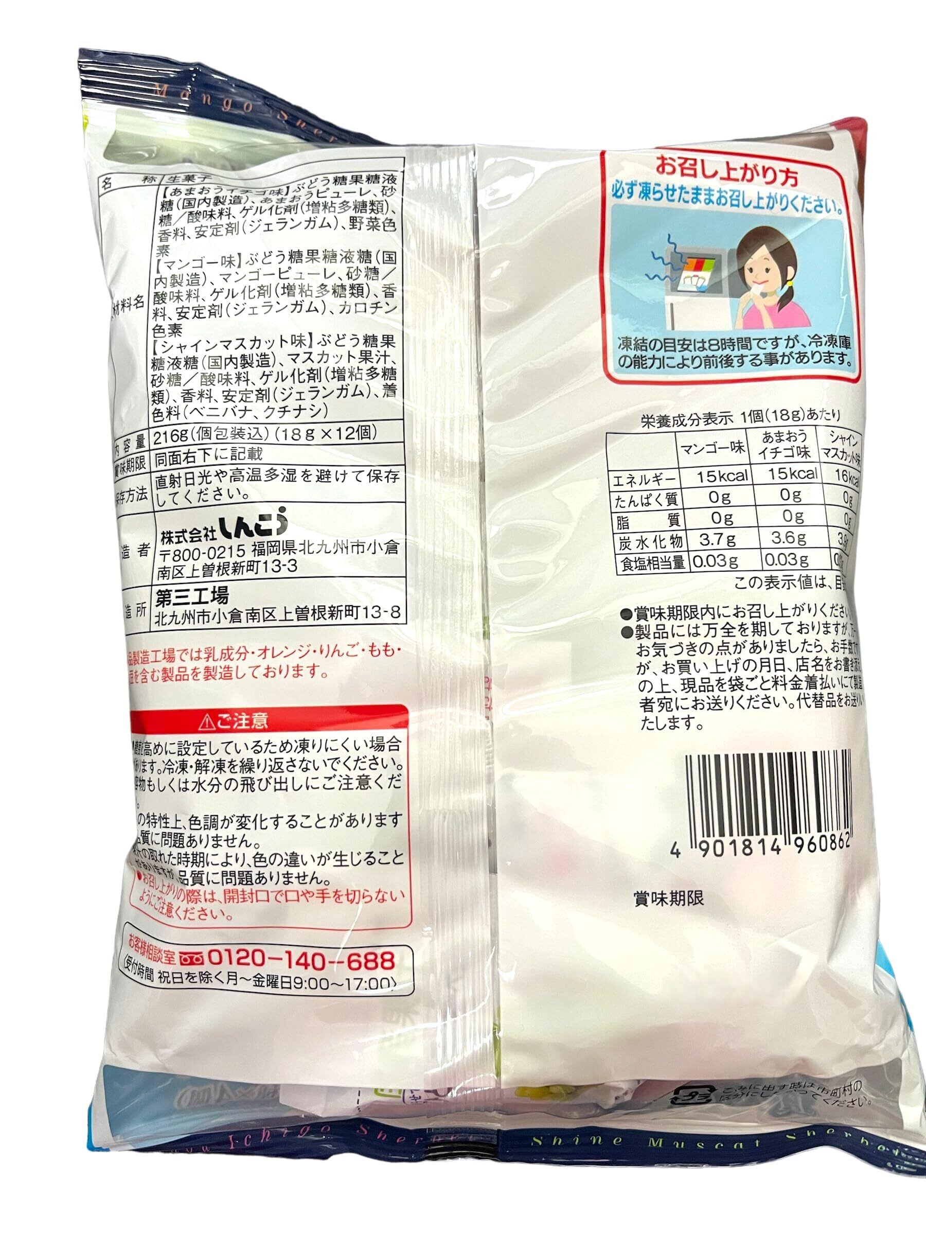 しんこう 国産果汁 ひとくちシャーベット プチサイズ 凍らせて マンゴー味 あまおうイチゴ味 シャインマスカット味 12個入(3種×4個)×4袋 (プチサイズ4袋, マンゴー・イチゴ・シャインマスカット)