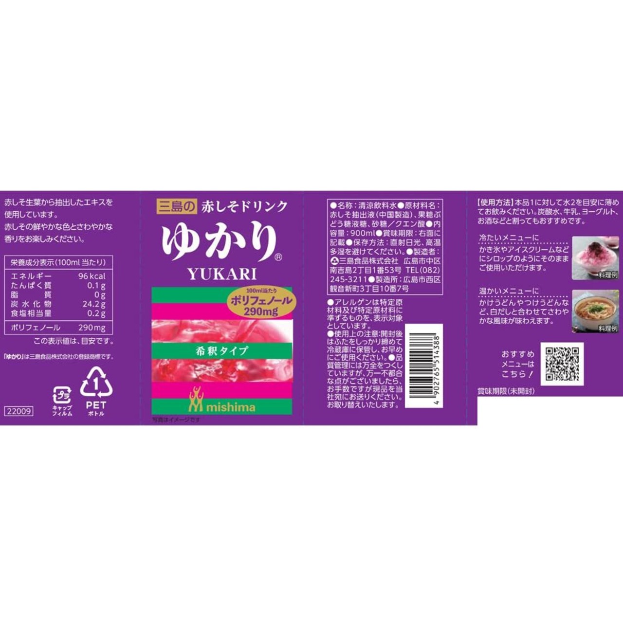 三島食品 赤しそドリンク YUKARI 900ml