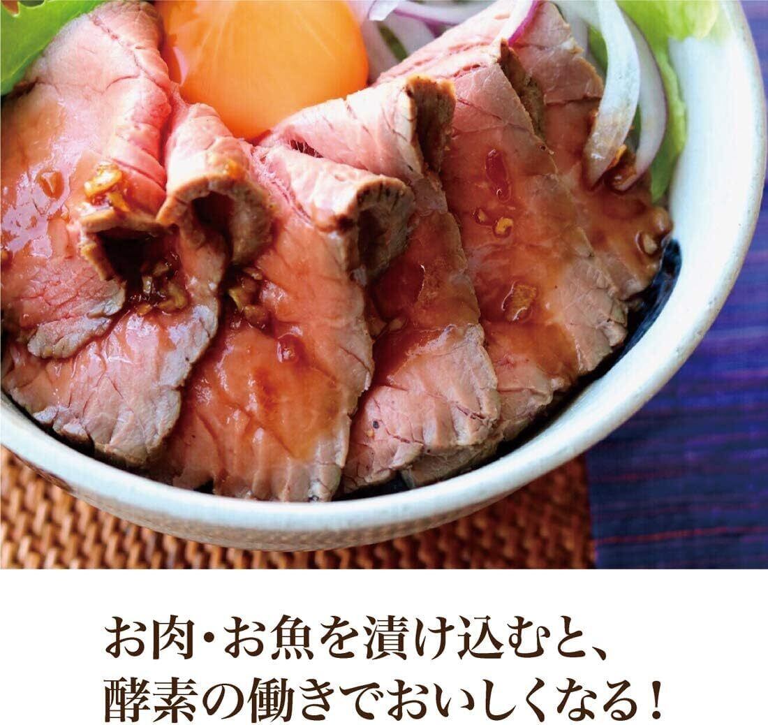 粒々の塩こうじをろ過して液体にしました。液体でも塩こうじ本来の酵素の力は変わらなく、お肉お魚を漬け込むと柔らかくしっとりした食感に仕上げます。液体だから、漬け込以外に、鍋・スープ・ドレシングとアレンジは広がります。計量・漬け込が簡単で、粒に比べて素材に浸透しやすく、焦げにくいのも特徴です。