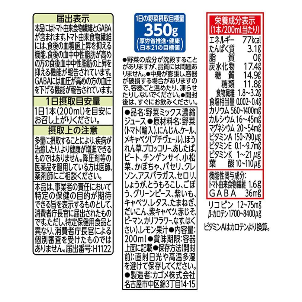 カゴメ 野菜一日これ一本 トリプルケア 200ml紙パック×24本(機能性表示食品 血圧 血糖値 中性脂肪 GABA トマト由来食物繊維)