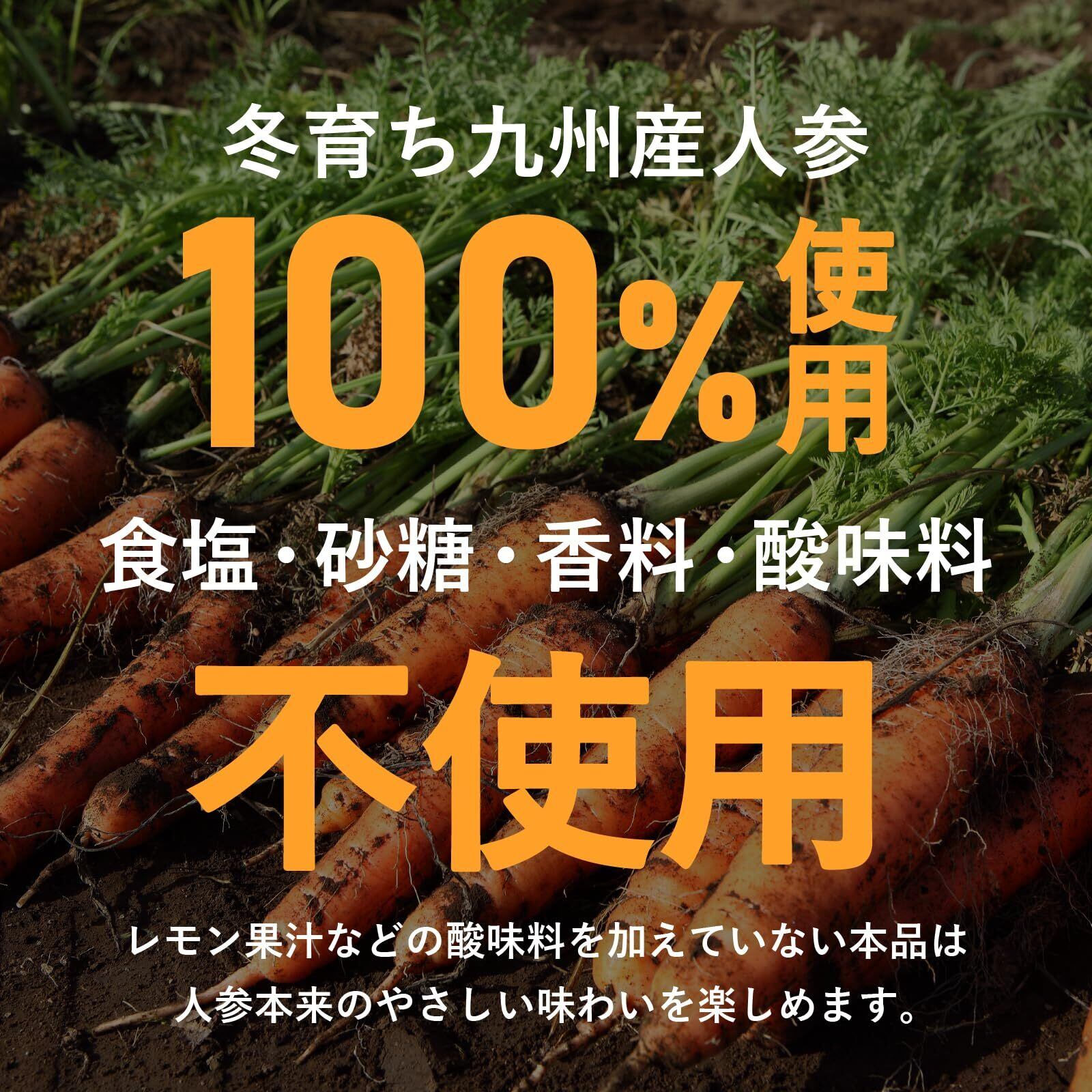 12~3月の寒い時期に収穫した九州産の人参だけを使用した人参100%ジュースです。冬に収穫した人参は青臭み・えぐみが弱く、甘みがあって飲みやすいのが特長です。2人参2本分使用しており、200mlあたりのβカロテンは9,596㎍。酸味料やレモン果汁を使用していないので料理にもご使用頂けます。冷やすとより美味しくお飲みいただけます。