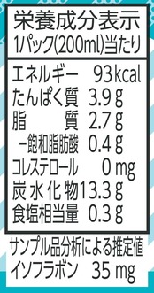 原材料:大豆(カナダ)、糖類(ぶどう糖果糖液糖、ぶどう糖、水あめ、果糖)、食塩/香料、甘味料(アセスルファムカリウム)