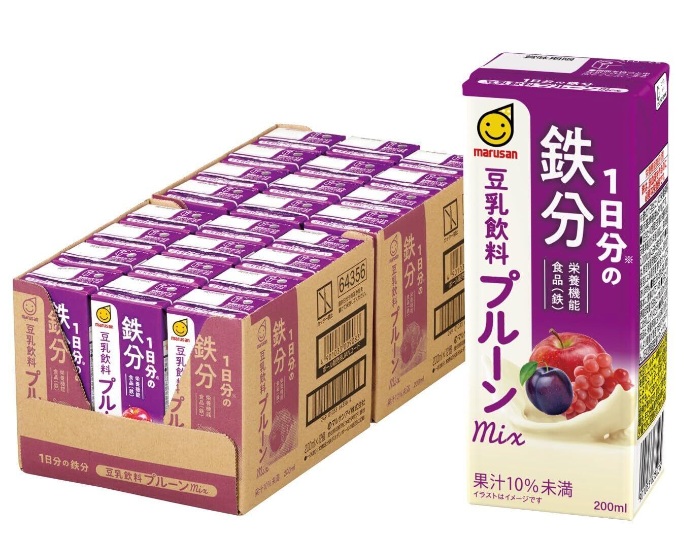 マルサン 1日分の鉄分 豆乳飲料プルーンMIX 200ml×24本