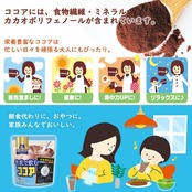 冷たい牛乳にサッと溶け、1杯(製品12g+牛乳150ml)でカルシウム・鉄・ビタミンDが1日の1/2量摂れる、親子で美味しいココアです。(栄養機能食品)