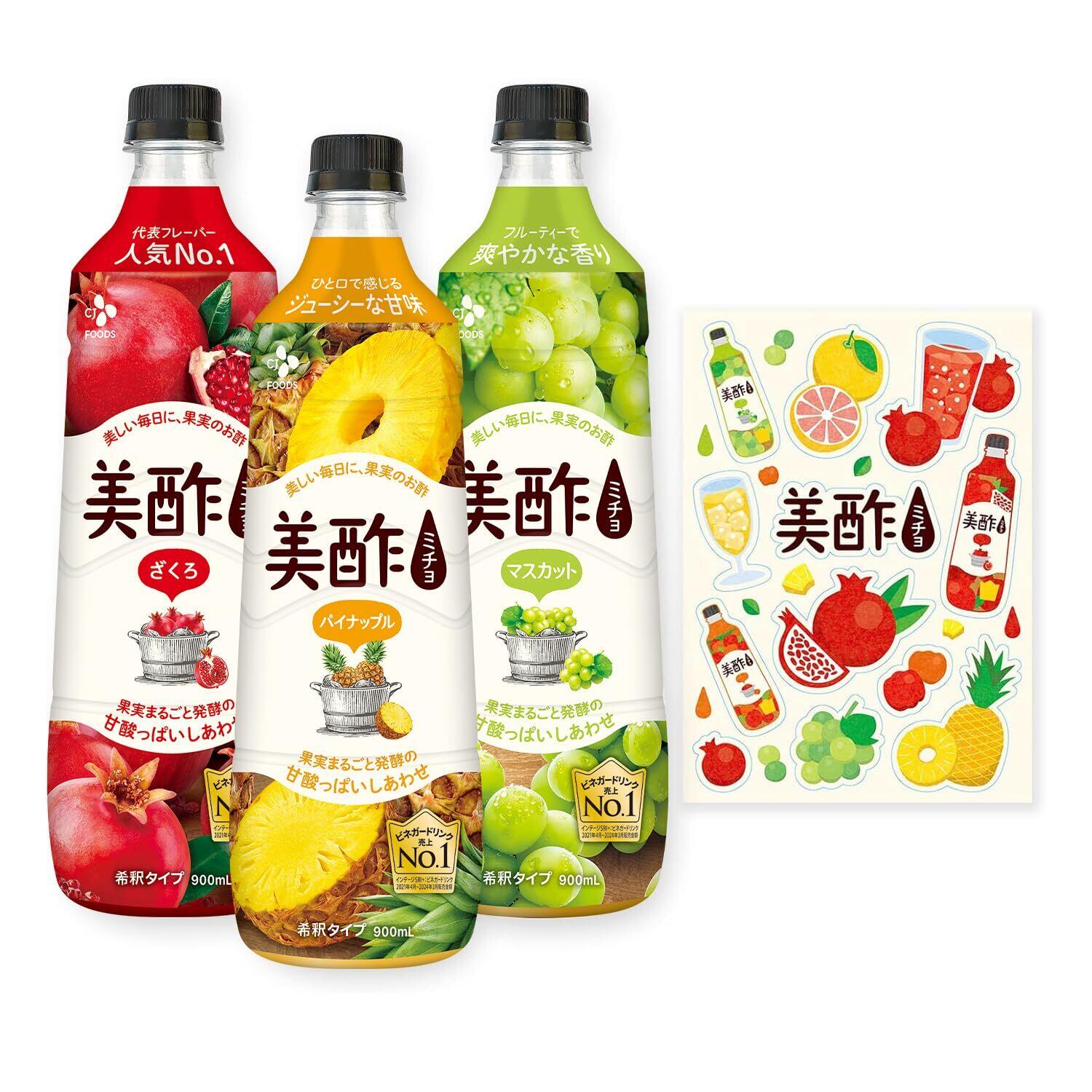 【 co.jp限定】 美酢 ミチョ 飲み比べ3本セット 各900ml 美酢シール付き特別セット (ざくろ パイナップル マスカット) ギフト お酢ドリンク飲む酢