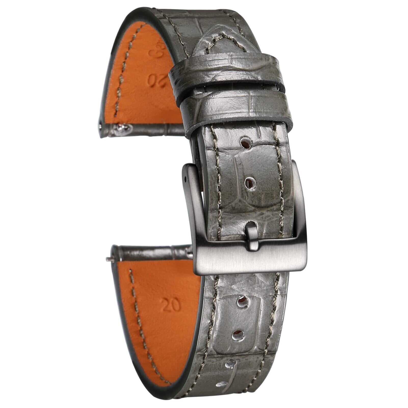 Hemsut 本革腕時計バンド クロコ ワニ革 クロコ型押し腕時計ベルト クイックリリース スマートウォッチバンド 18 9 mm ブラック·ブルー·ブラウン·グレー·グリーン